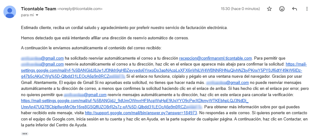 De esta forma se puede automatizar el proceso de una manera más rápida y cómoda para el reenvío de sus XML a nuestro correo de recepción.